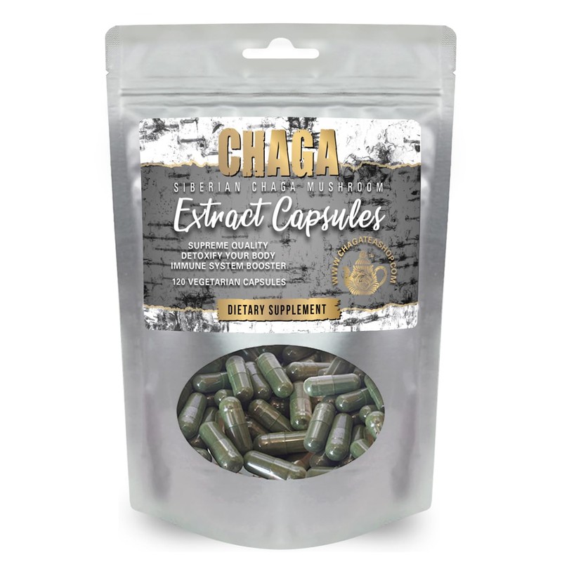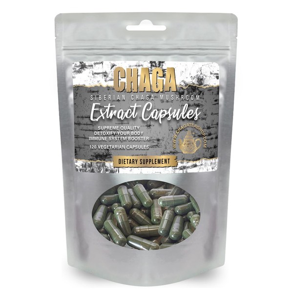 Siberian Chaga Extract Capsules Dietary Supplement 2 Month Supply 120 Vegetarian Capsules