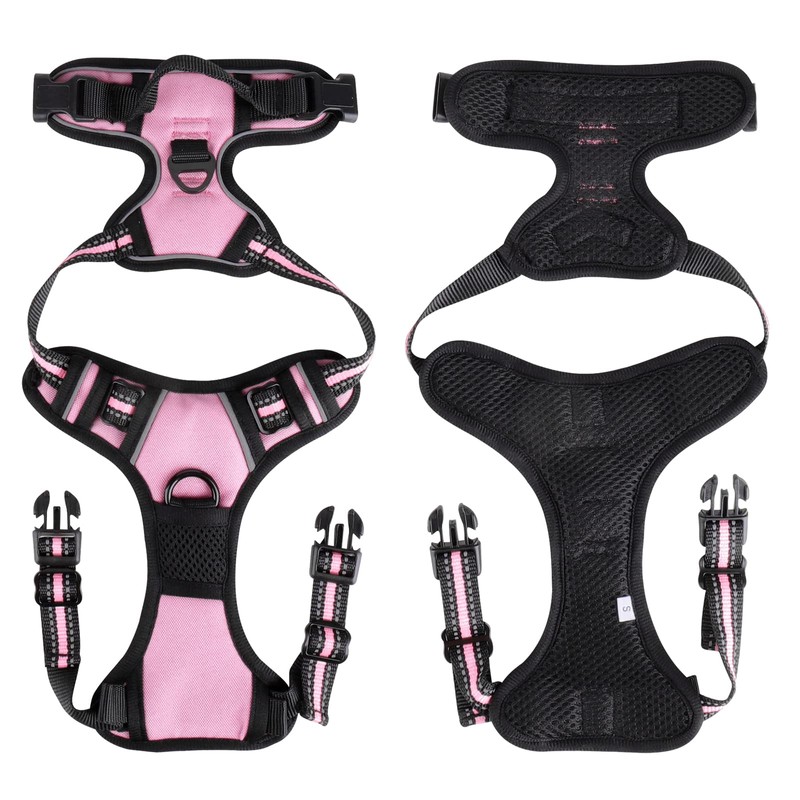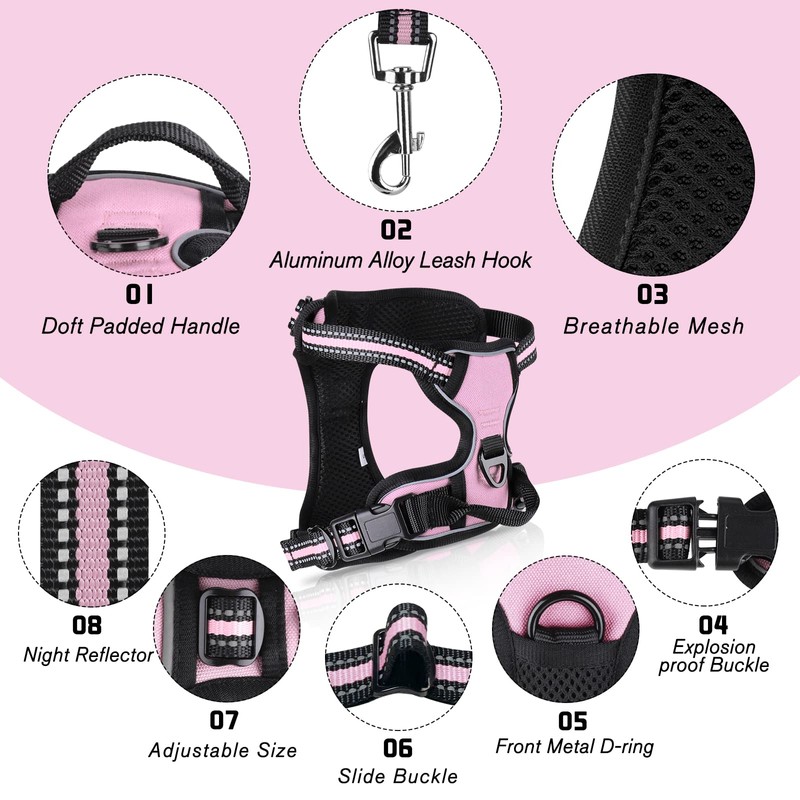- Safe and comfortable: the outer layer of this dog harness is made of durable Oxford nylon, the inner lining is breathable mesh with soft sponge padding to prevent injury, which provides additional comfort and protection. The double reflective stripe design of the dog harness allows the dog to be safe during night walks.