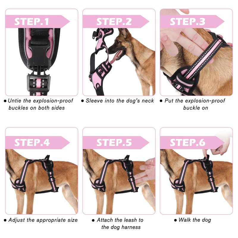 - Easy to use: the dog harness for small dogs is equipped with 2 buckles on the chest, which make it easier to put on the harness without the dog having to step in. Slide the harness over your dog's head, buckle it, adjust the straps, and off you go! Grab the top handle for extra control.