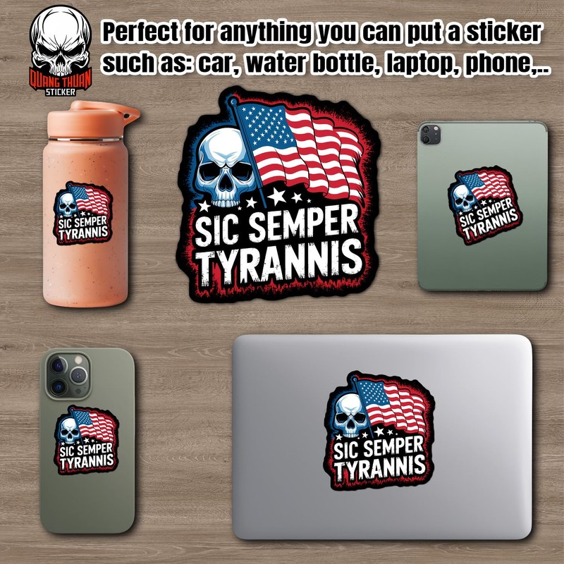 Sic Semper Tyrannis Sticker Retro American Flag BlackWaterproof Vinyl Bumper Sticker for Water Bottle Hard Hat Helmet Car Laptop