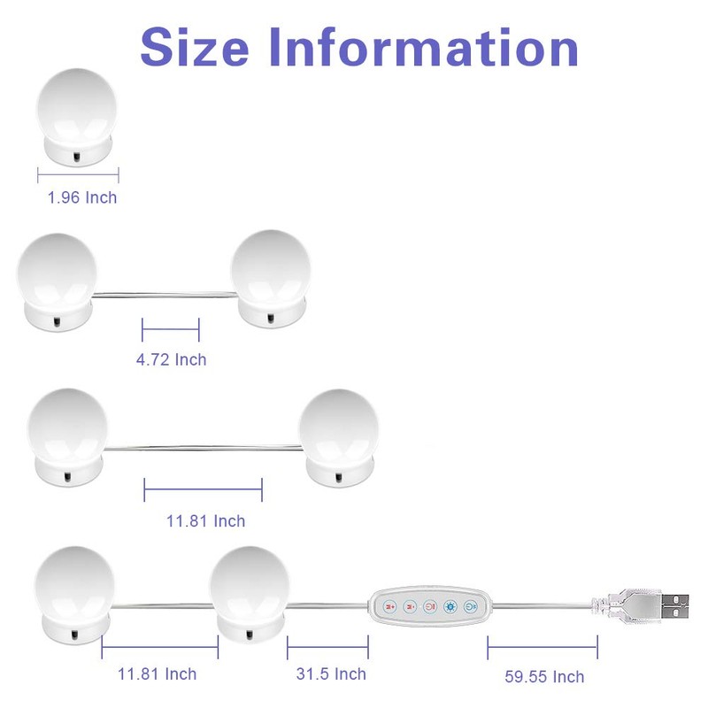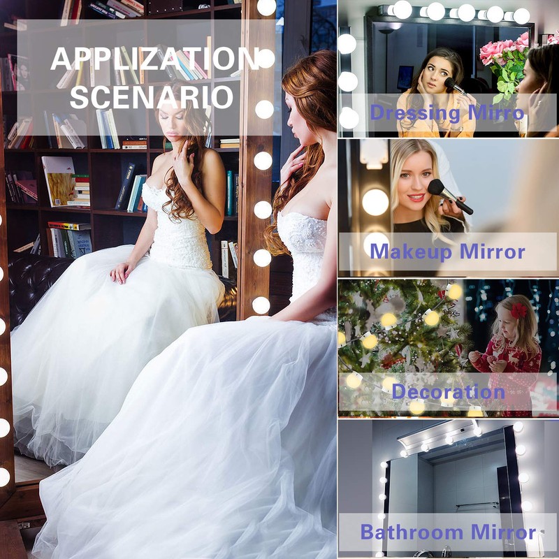 - MULTIFUNCTION: For makeup and trying on clothes. It can not only be used as led makeup mirror lights, but also be adopted to decorate bedrooms, washrooms, rest room, barbershops, art shows, cafes and so on. If you have any questions, please feel free to contact us.
