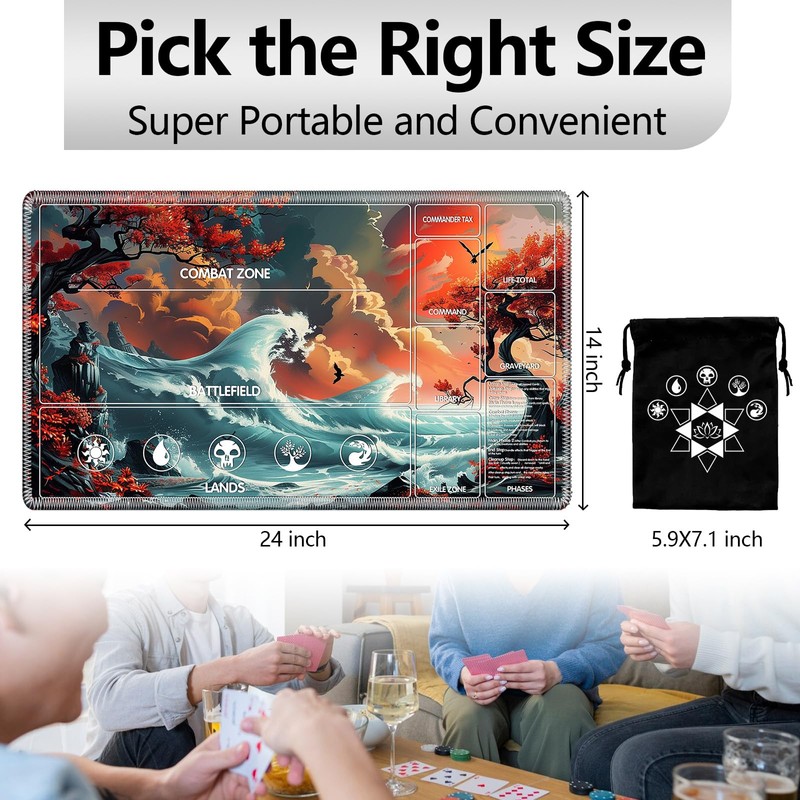 - Perfect Size for Gameplay: Our MTG playmat measures 24x14 inches (60cm x 35cm), providing ample space for your Magic: The Gathering or TCG (Trading Card Game) sessions. The included card storage bag measures 5.9x7.1 inches (15x18cm), offering convenient storage for your cards and accessories