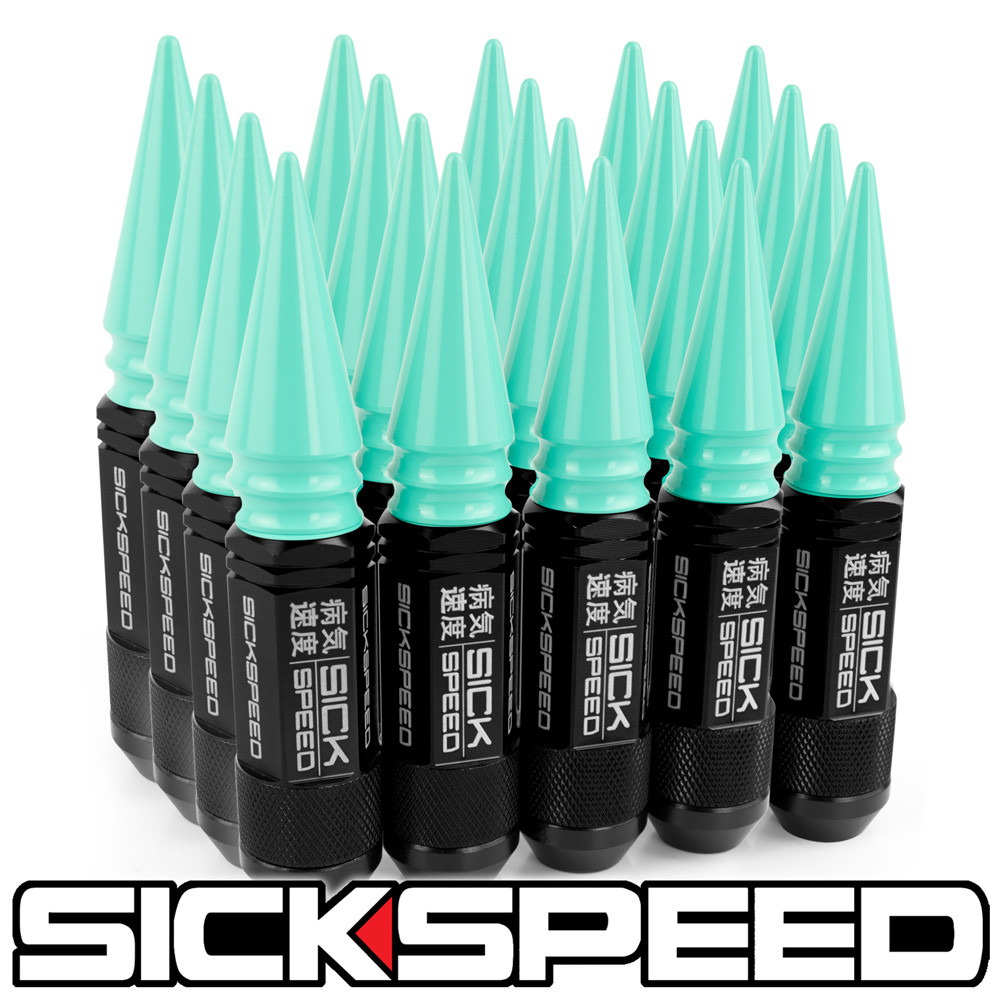 SICKSPEED 20PC BLACK / MINT GREEN SPIKED ALUMINUM 108MM 3 PC LUG NUTS 1/2X20 L22
