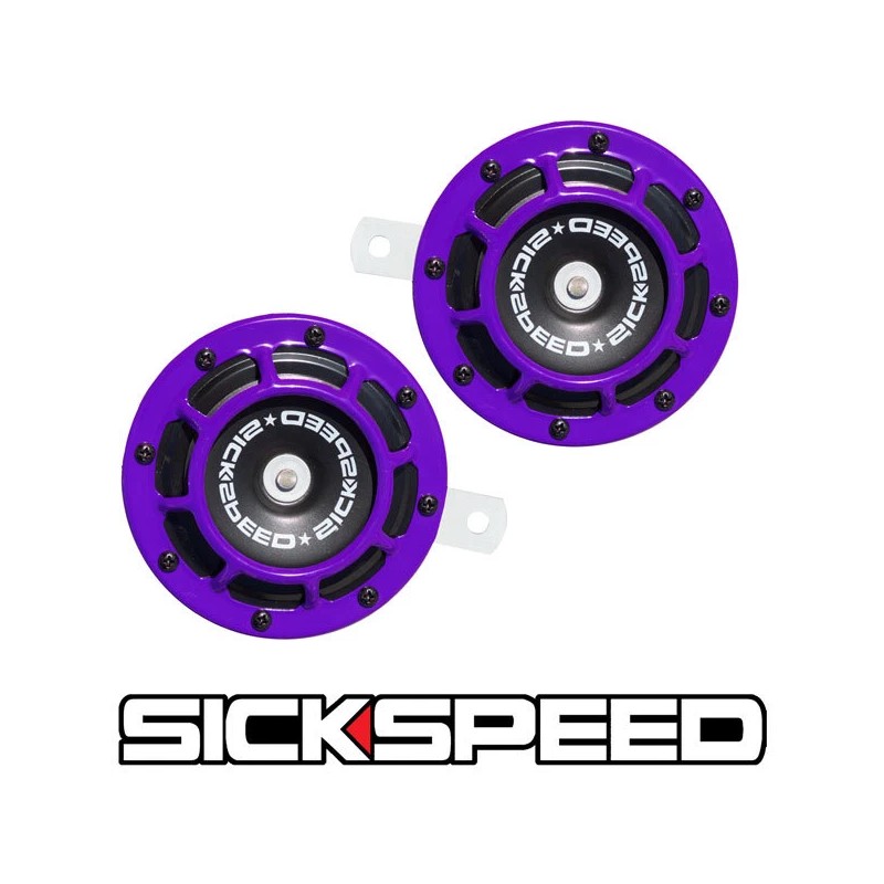SICKSPEED 2PC PURPLE SUPER LOUD COMPACT ELECTRIC BLAST TONE HORN FOR CAR 12V P2