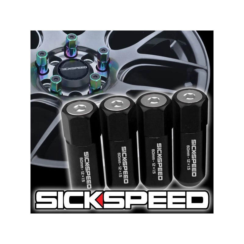 SICKSPEED 4 PC BLACK/POLISHED CAPS ALUMINUM LUG NUTS FOR WHEELS 12X1.5 N20