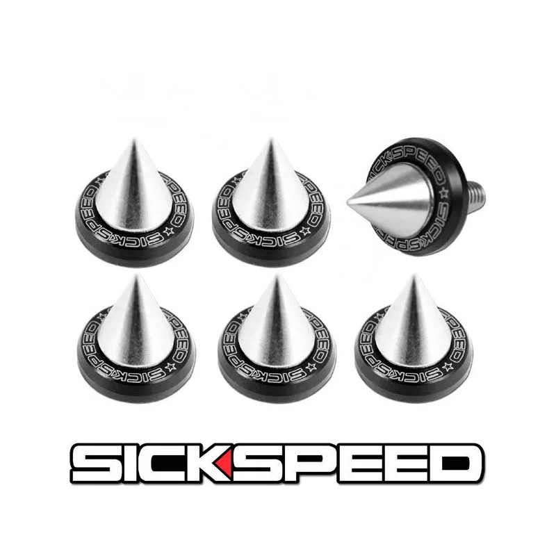 SICKSPEED 6PC BLACK 5MM WINDSCREEN FENDER WASHER BOLT KIT W POLISHED SPIKES MOTORCYCLE J