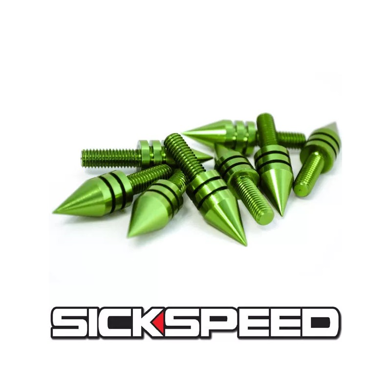 SICKSPEED JDM 2016 6PC GREEN BILLET ALUMINUM MOTORCYCLE SPIKED BOLT SCREW FOR WINDSCREEN H