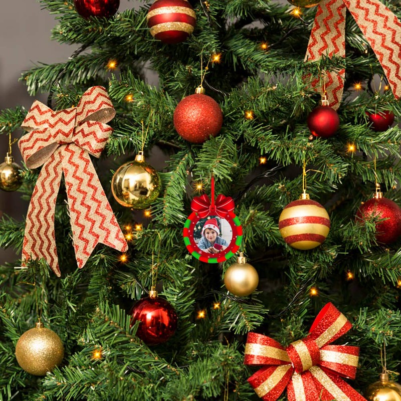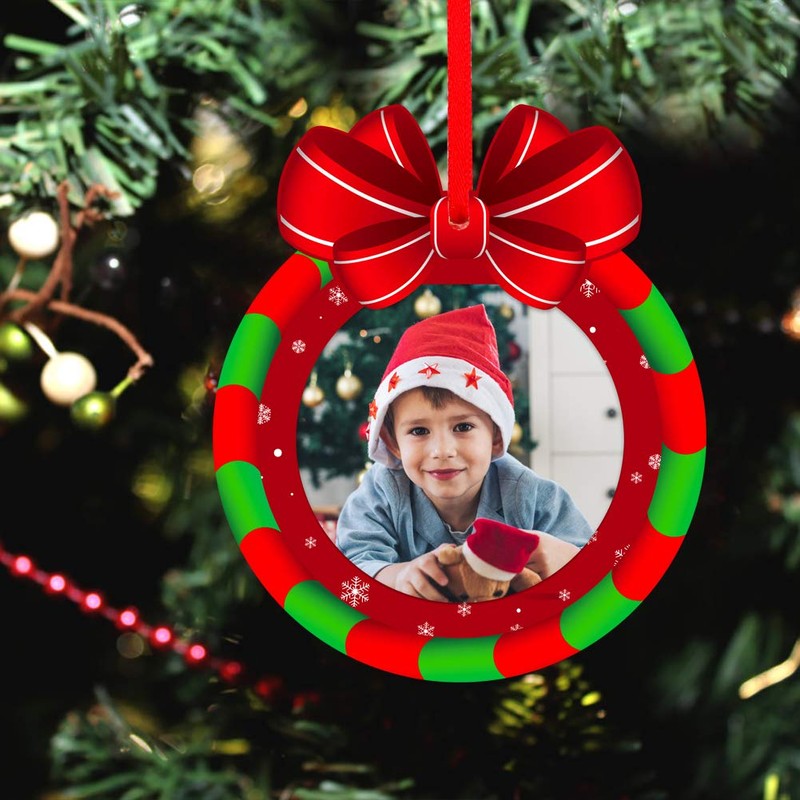 - CHRISTMAS FRAME ORNAMENT: Frame ornament size in 2.8"x 3", Photo: 2.2" x 1.8" circular arcylic christmas ornament 2020.