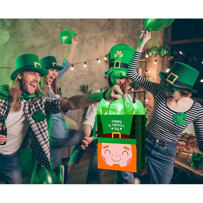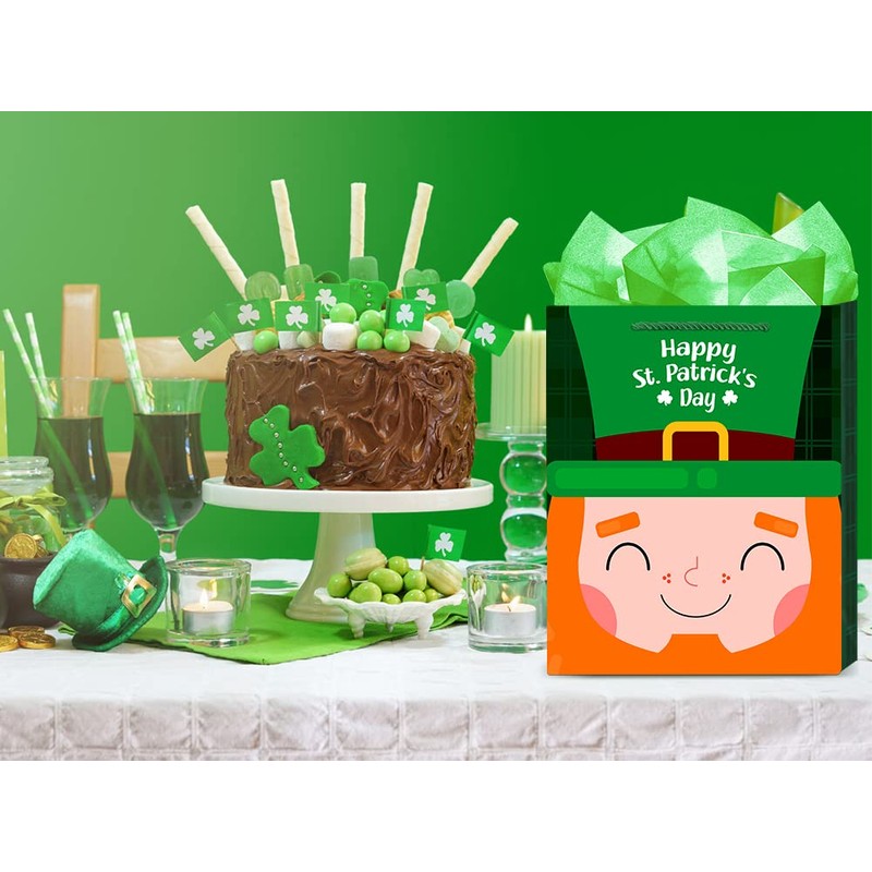 - 【St. Patricks Day Gift Bag】 Comes with a Happy St. Patrick's Day gift bag with green handles and a piece of green tissue paper to make gifts wrapping ,look cute and beautiful, great st. patricks day gift bag for kids children girls boys
