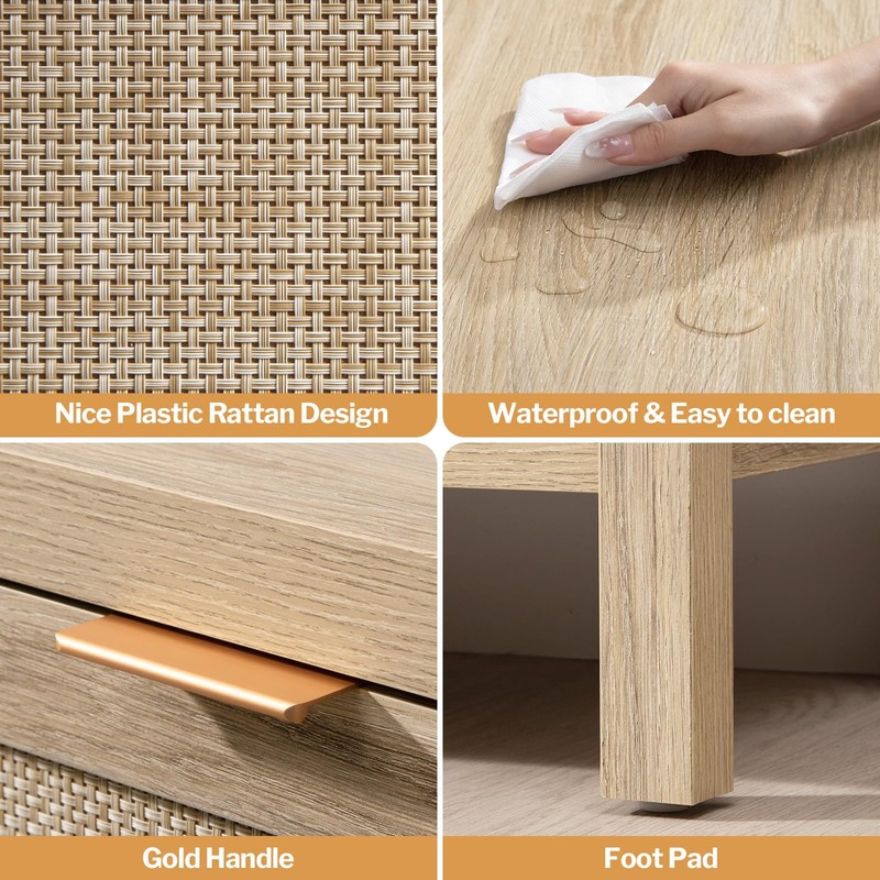 • Modern Boho Console Table: Designed with natural wood grain and rattan-decorated drawers, has a clear texture. The classic design blends well with any style of decor, adding a sense of elegance to your room.