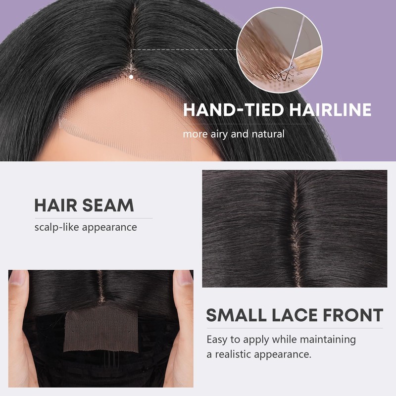 - 【Hand-Tied Lace Hairline Perfection】The compact hand-tied lace front blends discreetly with your natural hairline, creating seamless edge definition. Its delicate miniature lace design ensures undetectable transition from forehead to wig, perfect for achieving low-maintenance realism in both casual and formal settings