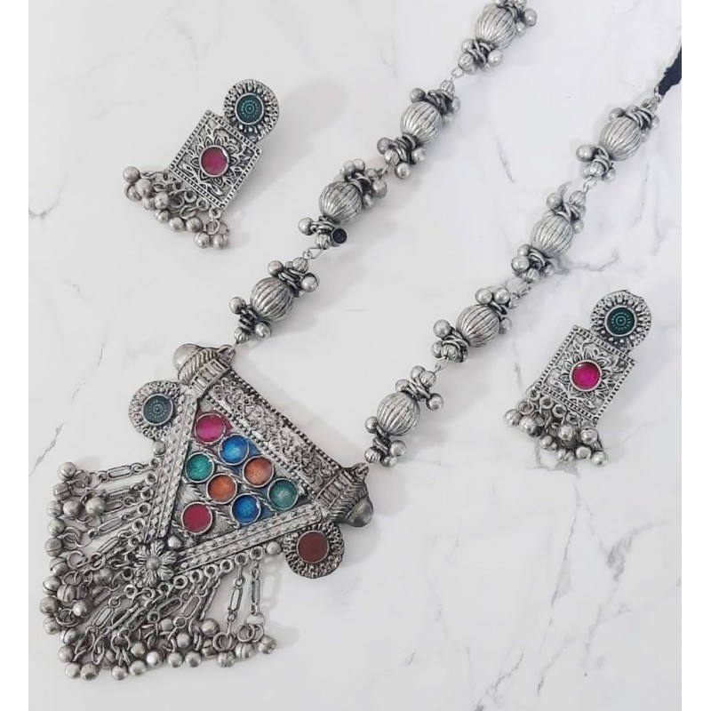 Siddhatva Designer Statement Afghani Antique Oxidised Silver Indian Party Ethnic Tassel Ghungroo Bells Tribal Gypsy Necklace Jewelry Set Women