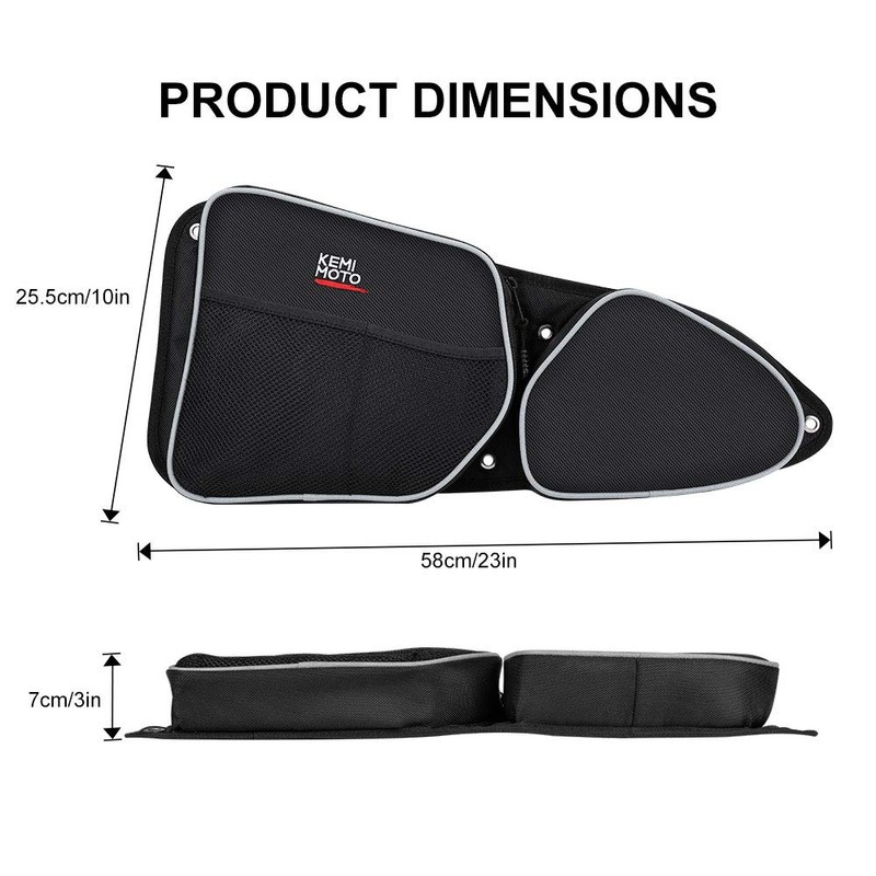- 【Material】 - We use the PVC materials to make the door bag for rzr and the water repellent zippers sturdy enough. These kemimot door bags are life waterproof, they can not be completely waterproof.