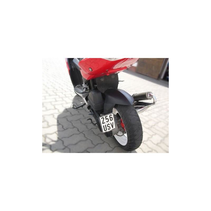 - The number plate holder fits very well on the shock absorber thanks to the 1-hole attachment.