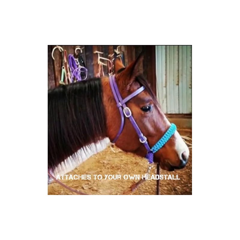 side pull hackamore with a whoa bitless bridle attachment horse tack neon turquoise and chocolate brown