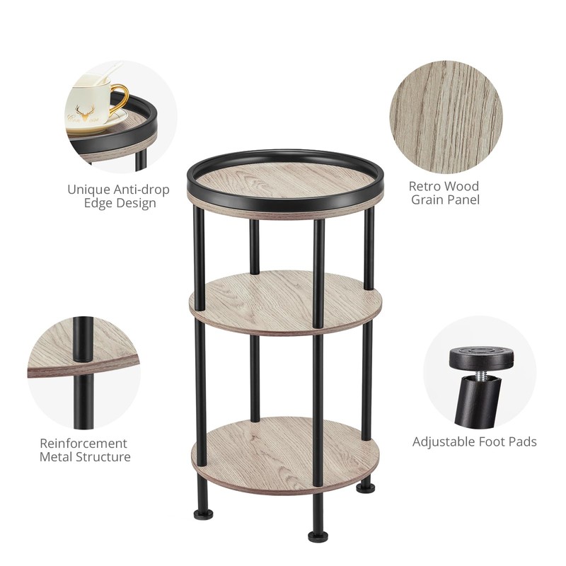 - 【EASY ASSEMBLE】Assembly is a breeze, taking only 10 minutes with easy-to-follow picture instructions and a simple structure. All you need is an Allen key (included) to complete the process. Upgrade your living space with this 3 Tier Round End Table today!