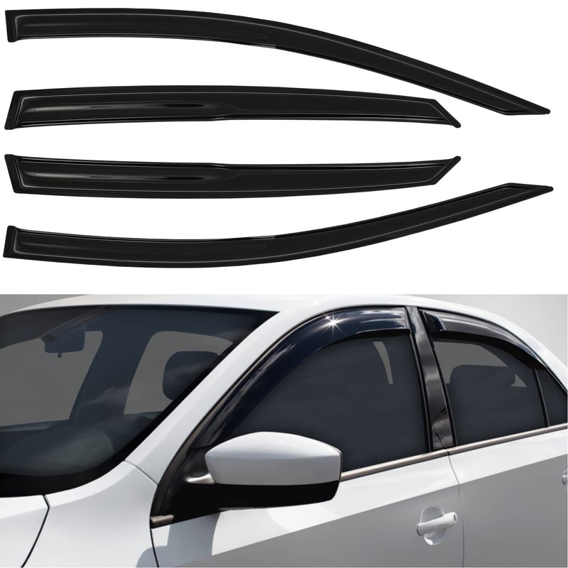 - Package Include: 4 pieces side window deflector.outside mount visor(not In-Channel)!premium quality acrylic plastic dark smoke color is sturdy and goes well with the body line,aerodynamic appearance.