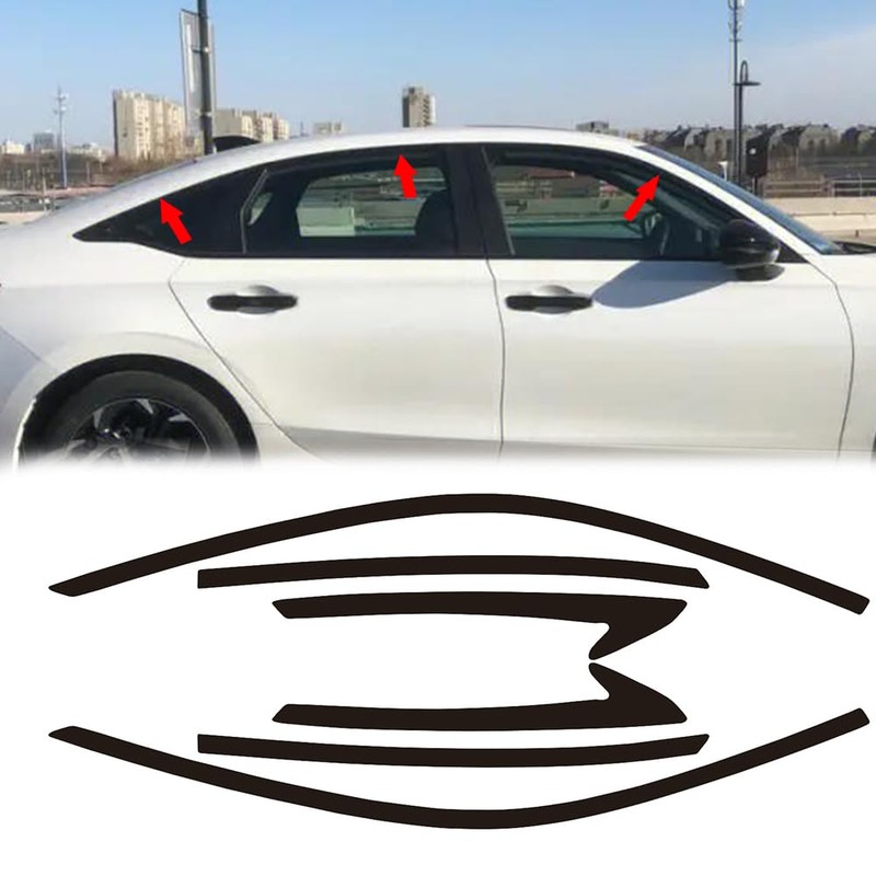 Side Window Trim Chrome Delete Blackout Overlay Kit Pre-Cut Vinyl Compatible for Honda Civic 2021-2023