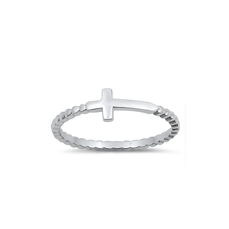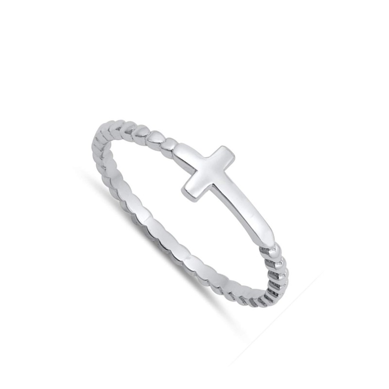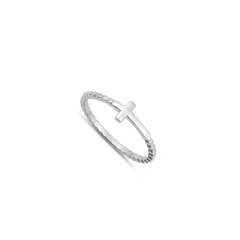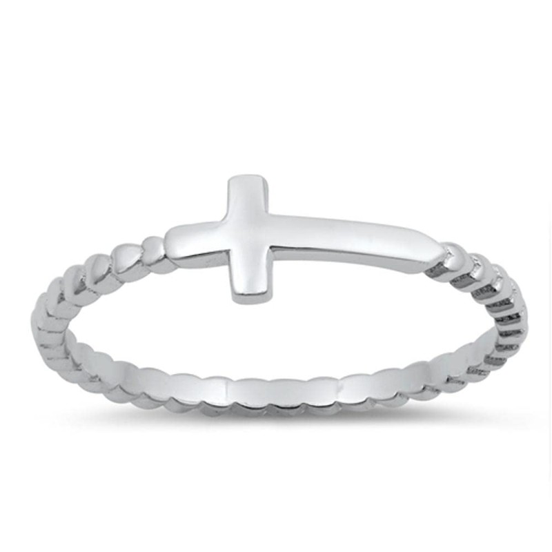 Sideways Cross Beaded Heart Love Ring New .925 Sterling Silver Band Size 3