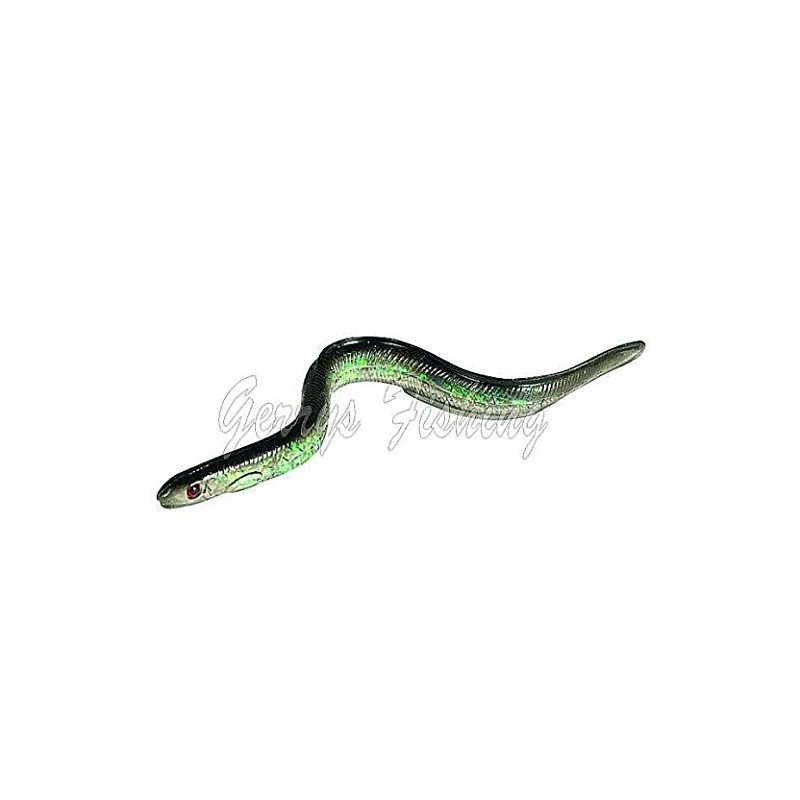 Sidewinder Shimmer Eels are an unweighted sandeel imatiation with a soft body and flexable internal holographic strip for added attraction. They can be either head hooked and fished "unweighted" or mount them on a jig head for a different action. Fish from boat on a long flowing trace or cast from the shore on either a jig head or behind a drilled bullet.