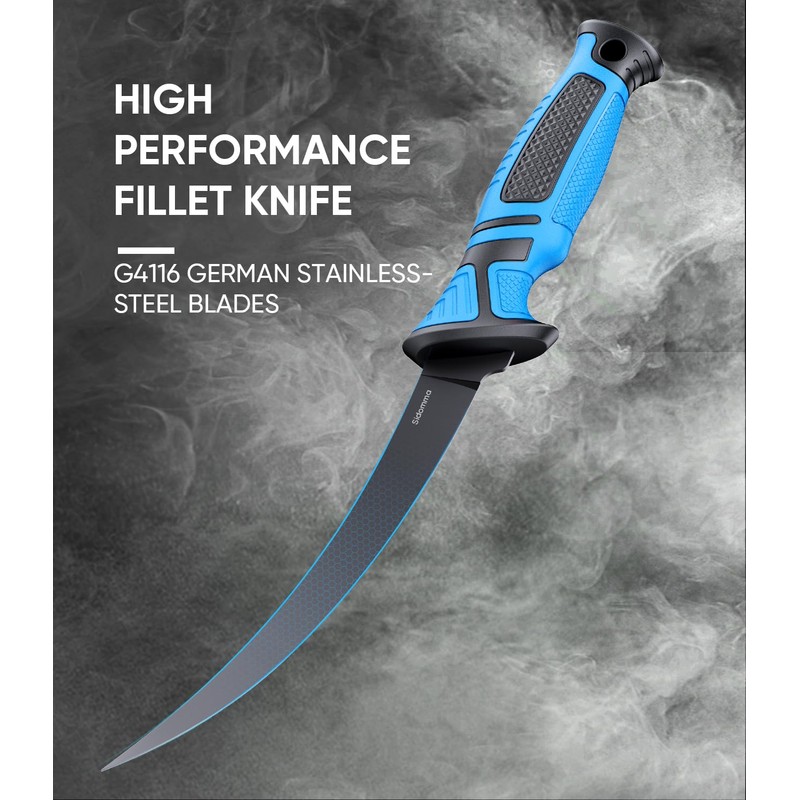 - 【Performance Fillet Knife Set】 Item includes 3 standard fish knives (5-6-7 inches) made of G4116 German Stainless Steel. Razor Sharp & Flex can be used for quick filleting&boning meats and fish. Their corrosion resistance and durability are far superior to those of similar products on the market