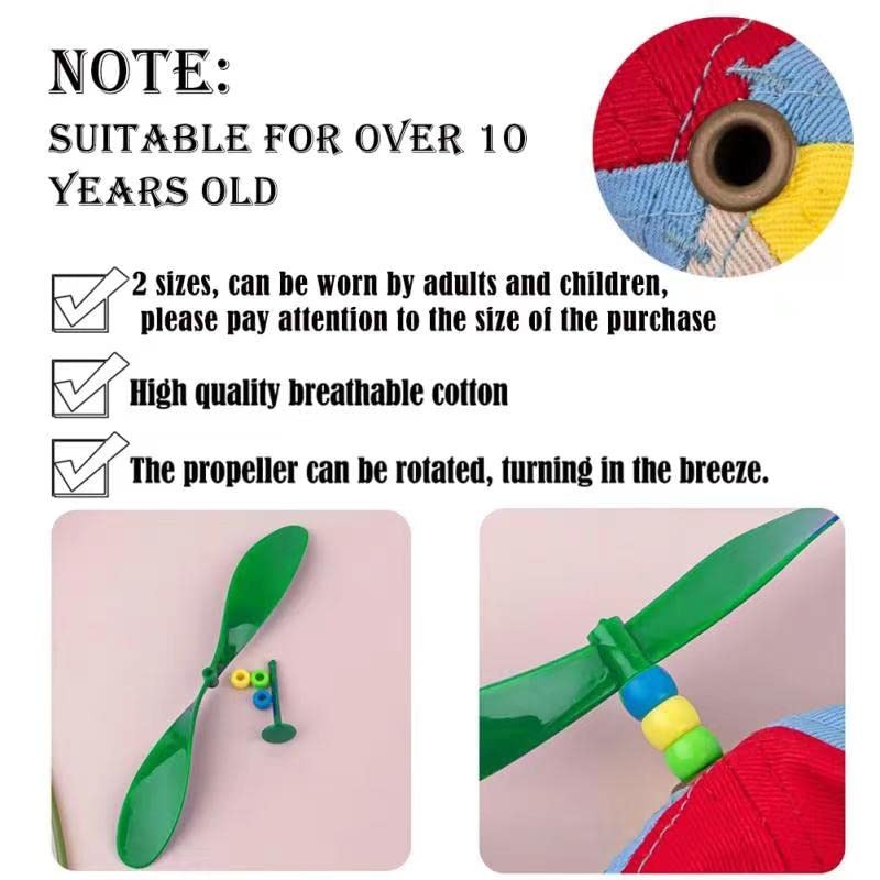 - ☀Material:The propeller hat is made of cotton fabric, lightweight and durable, odorless and non-toxic, without dandruff or fading. Classic style with vintage look makes this helicopter hat a necessary accessory for your party and add more fun.