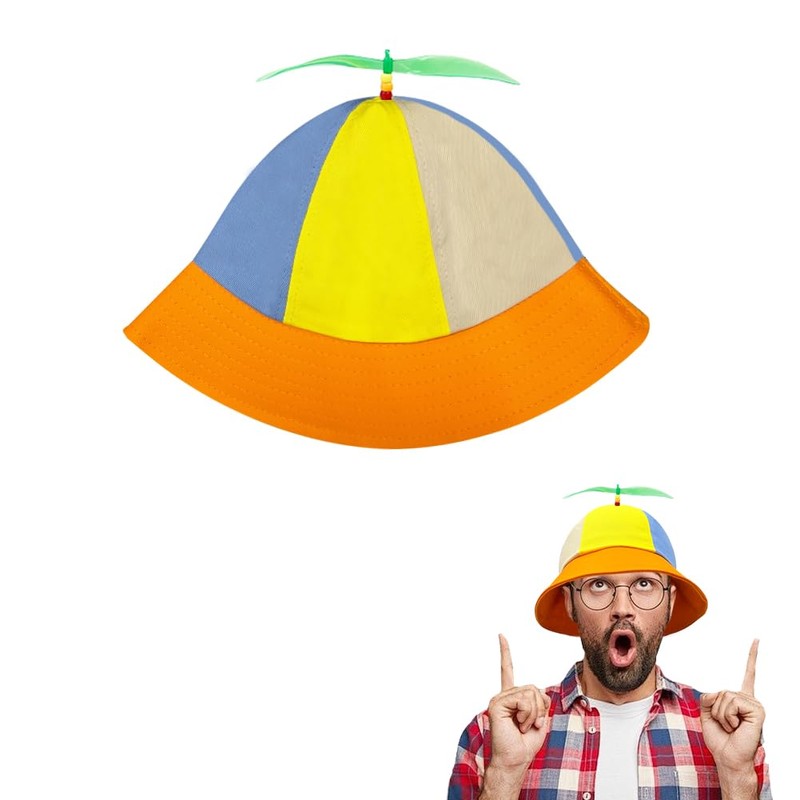 - ☀ Size:The diameter of the rainbow helicopter hat is approx. 56-60 cm, suitable for children to go out and play to prevent the sun. Classic bucket lid, 6-piece colourful patchwork, cute propeller dragonfly and bead decoration on top.