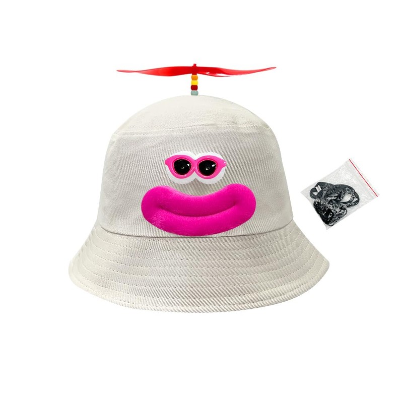 - ☀ Größe: The diameter of the helicopter hat is approx. 58cm, Suitable for children to go out and play, prevent the sun.Classic bucket lid, cute propeller dragonfly and pearl decoration on top.