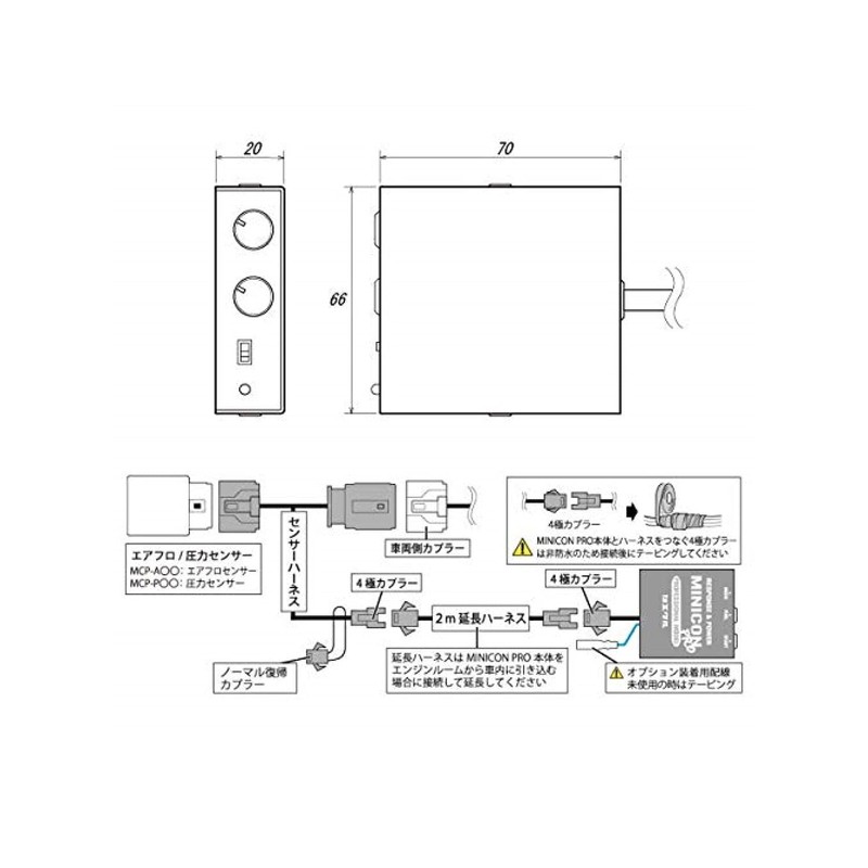 • Main Unit (Size: 2.6 x 2.6 x 0.7 inches (67 x 65.8 x 18 mm) *Excluding dial and switch) Sensor Connection Harness (Approx. 31.5 inches (80