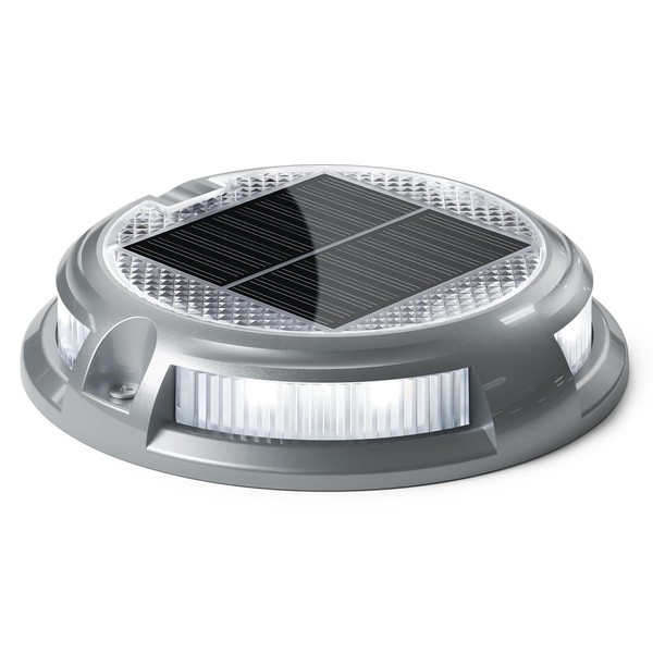 SIEDiNLAR Solar Driveway Dock Lights 16 LEDs 9 Modes, Deck Lights Waterproof Outdoor Warning Markers for Step Pathway Driveway Walkway Ground Yard Garden, RGB (1 Pack)