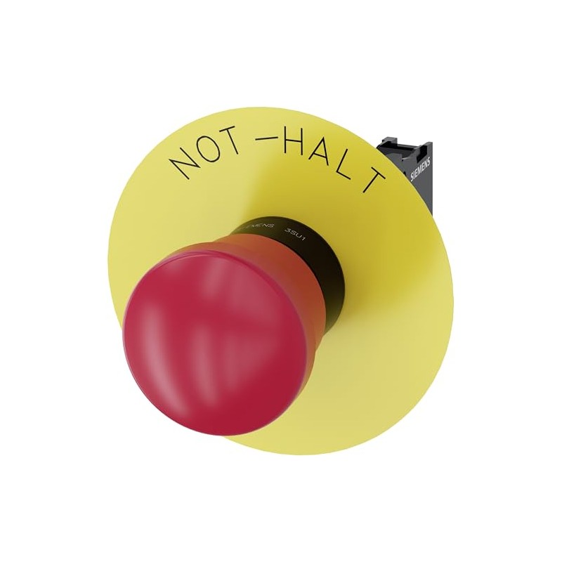 Siemens 3SU1100-1HA20-1CH0 Emergency Stop Mushroom Pushbutton with Backing Plate and Holder, White, 22 mm