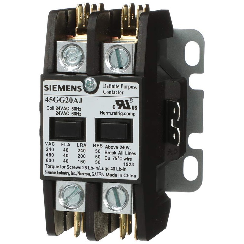 Siemens 45GG20AH Definite Purpose Contactor, 2-Pole, 40 Amp, 440-480V AC Coil Voltage