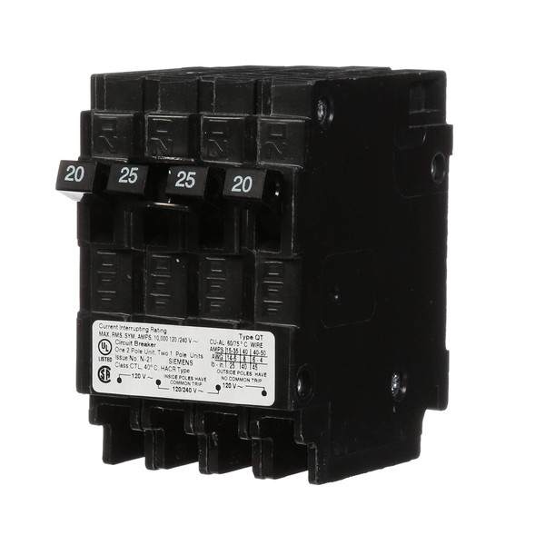 Siemens Q22025CT 25-Amp Double Pole Two 20-Amp Single Pole Circuit Breaker