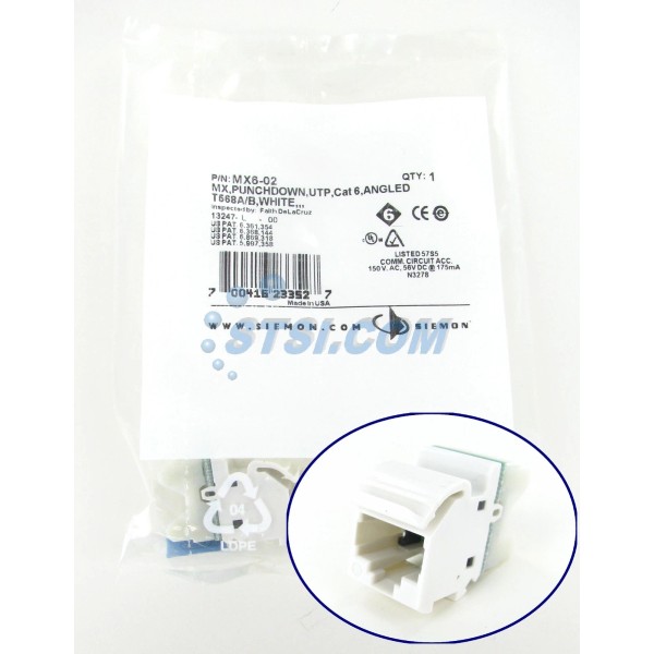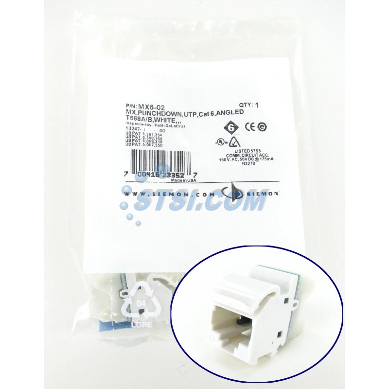 Siemon MX6-01 Max Cat6 RJ45 Angled Modular Jack, White ~STSI