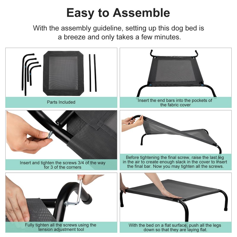 - Easy Maintenance: featuring a washable and breathable mesh cover, our Elevated Dog Bed Cot is easy to clean and maintain. Keep your pet's sleeping area fresh and hygienic with minimal effort.