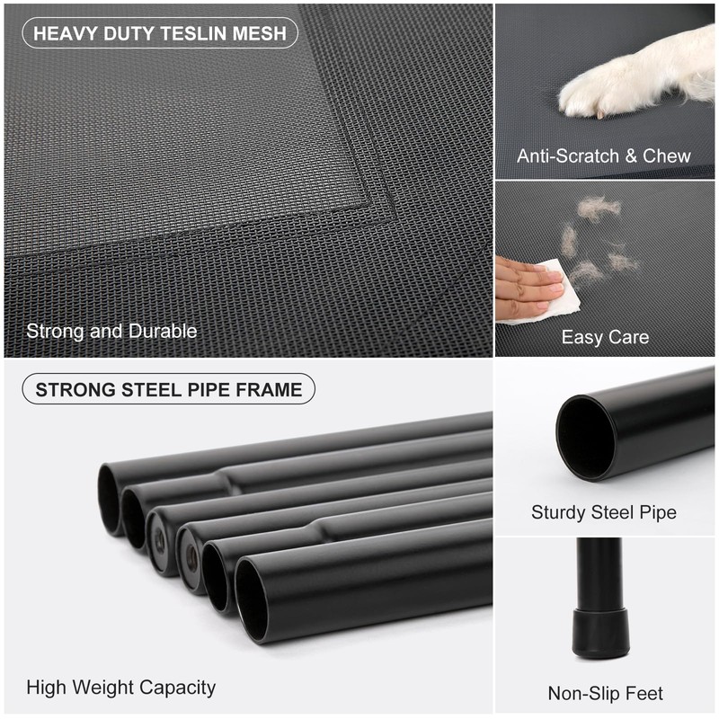 - Easy Maintenance: featuring a washable and breathable mesh cover, our Elevated Dog Bed Cot is easy to clean and maintain. Keep your pet's sleeping area fresh and hygienic with minimal effort.