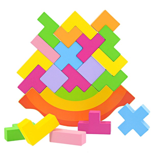 - ★ HIGH QUALITY WOODEN TOYS The balance stacking blocks are made of solid wood and multi-layer non-toxic water-based paint with bright colors, rounded edges and smooth surfaces.