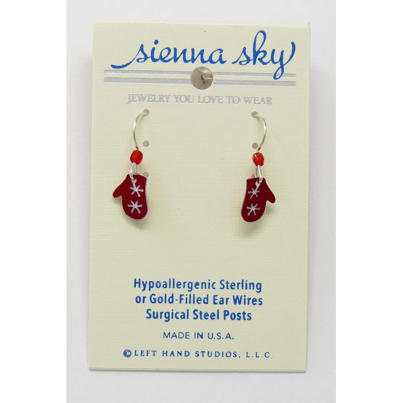 Sienna Sky Earrings: Red Mittens with Snowflakes