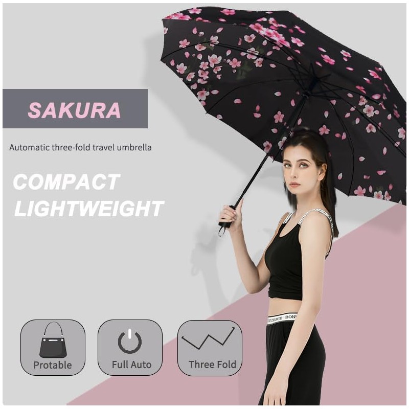 SIEPASA Windproof Travel Compact Umbrella-Automatic Umbrellas for Rain-Compact Folding Umbrella, Travel Umbrella Compact, Small Portable Windproof Umbrellas for Men Women Teenage. (Sakura)