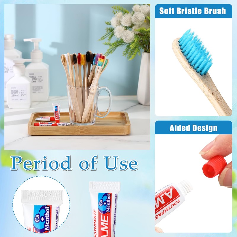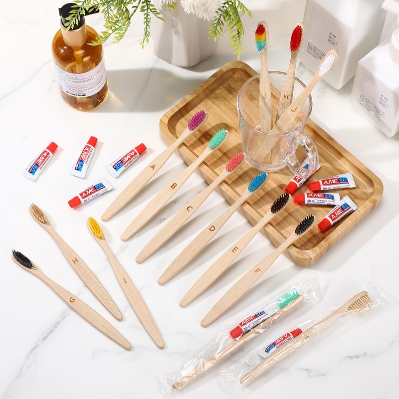 - Abundant Stock for Everyday Needs: our pack includes 120 set of soft toothbrushes set, Each set includes: 1 bamboo toothbrush, 1 3-gram mini tube of toothpaste, making it an ideal choice for larger families; The 10 letters [A-J] are printed on the same color toothbrush, 1 for each, so you can easily identify each toothbrush separately