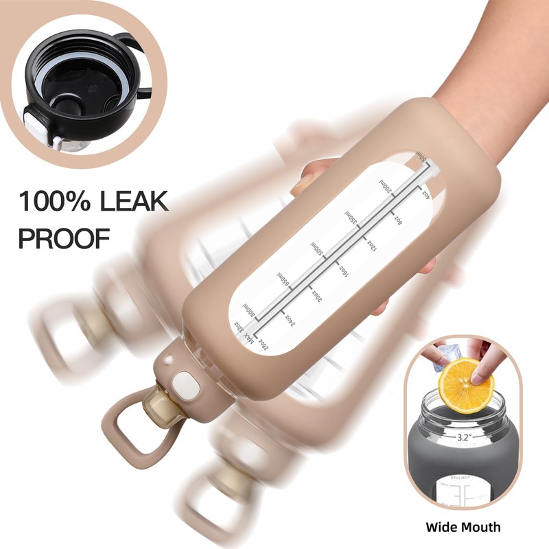 - WATER BOTTLE with TIME MAKER: With a generous 32-40oz capacity, our glass water bottle is big and tall and perfect for staying hydrated throughout the day.The water bottle also features convenient time markings allowing you to track your water intake and maintain a healthy hydration routine.You can also use it to monitor the daily water intake of parents and children