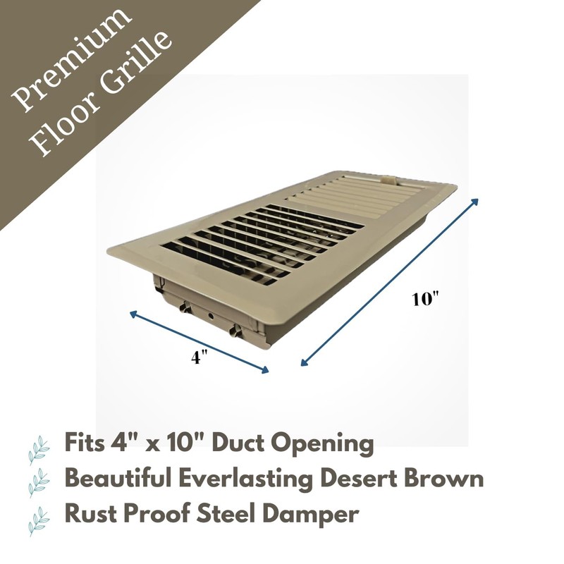 Sierra Grates Precision Flow 4"x 10" Steel Floor Register - 2 Way Louvered Design,Desert Brown Finish - Premium Home Vent Covers, Durable & Decorative - Fits 4"x10" Duct Openings, Easy Installation