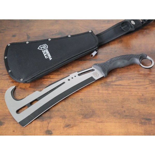 Sierra Zulu 17” Clawhook Machete Rugged Heavy Duty Rubber Handle Tactical Sharp Thick Black