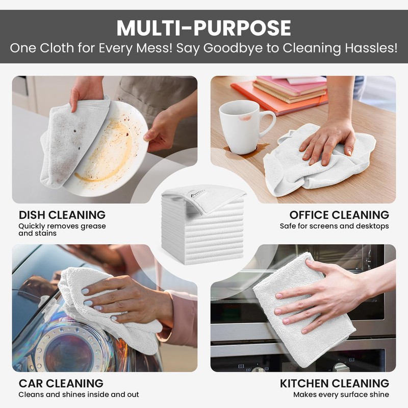 - Versatile for Any Task: Designed in a clean, solid white color, our cleaning towels are suitable for a wide range of cleaning tasks—whether in the kitchen, bathroom, car, or for electronics. A dependable choice to keep your cleaning routine simple, organized, and effective.