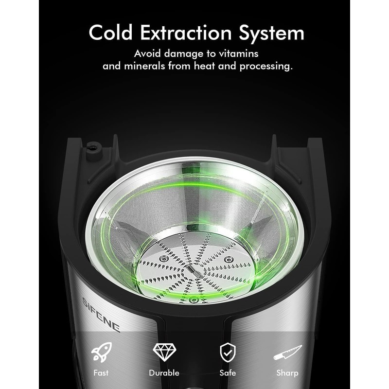 Boost your health with the SiFENE Classic Centrifugal Juicer. Powered by an 800W motor reaching up to 1000W, this juicer quickly pulls every nutrient from your fruits and veggies. Its surgical-grade stainless steel cutter and mesh whiz at high speeds, smartly separating the juice and retaining vitamins and minerals. Despite its impressive power, it sports a sleek design that's space-efficient, easy to use and clean. Plus, all removable parts are dishwasher-friendly. The juicer might be a tad noisy due to its high-speed motor, but it certainly delivers quality performance that's more affordable than slow juicers. This robust stainless-made juicer is built to last, and helps you whip up a healthy juice in seconds for weight loss or body rebalance. Safety is assured with all parts crafted from 100% BPA-free, food-grade materials. Enjoy the fresh, homemade juice you love with the SiFENE Juicer - it's quick, mess-free and oh-so-convenient!
