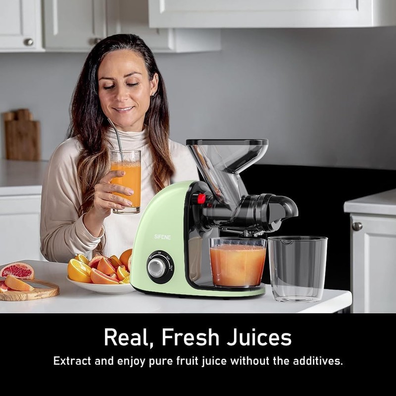 - [More Juice, Less Waste with Superior Cold Press Technology] - Extract the best out of your fruits and veggies with SiFENE's advanced low-speed cold press technology. Running at 80 RPM, it effectively deters foam build-up, reduces clogging and delivers a fresh, nutrient-rich juice!