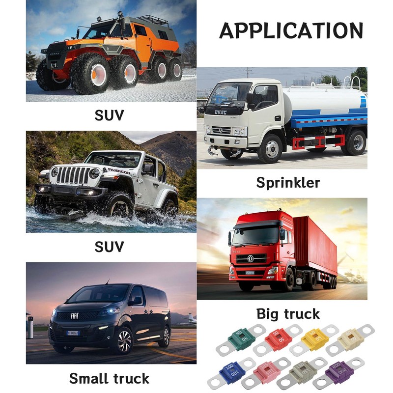 This car fuse is commonly used in cars, trucks, construction vehicles, agricultural machinery, passenger cars, caravans.