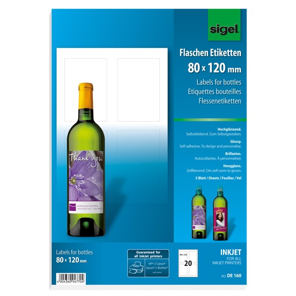 Sigel 80 x 120mm Labels for Bottles (20 Pieces)