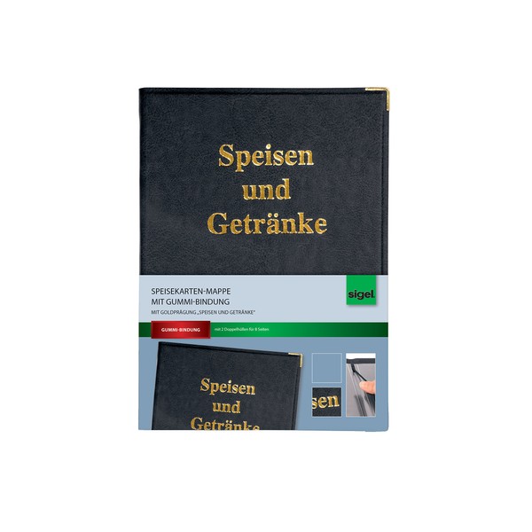 Sigel menu Folder with Embossed in Gold and Rubber Binding for A5-1 Pieces Black