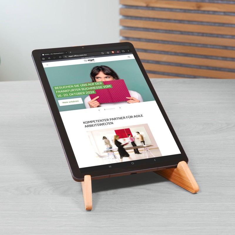 Sigel SA207 Laptopständer aus Bambus, höhenverstellbarer Laptophalter, leicht, faltbar, tragbar, 30 x 14,5 x 1,8 cm